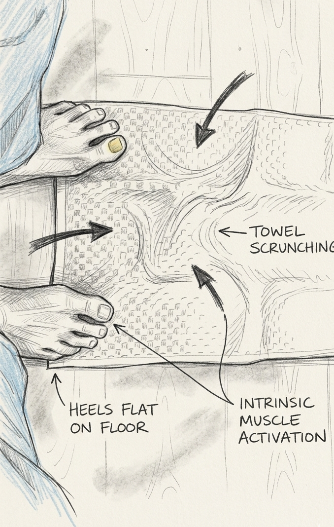 The Towel Scrunch & The “Heel-Glue” Rule