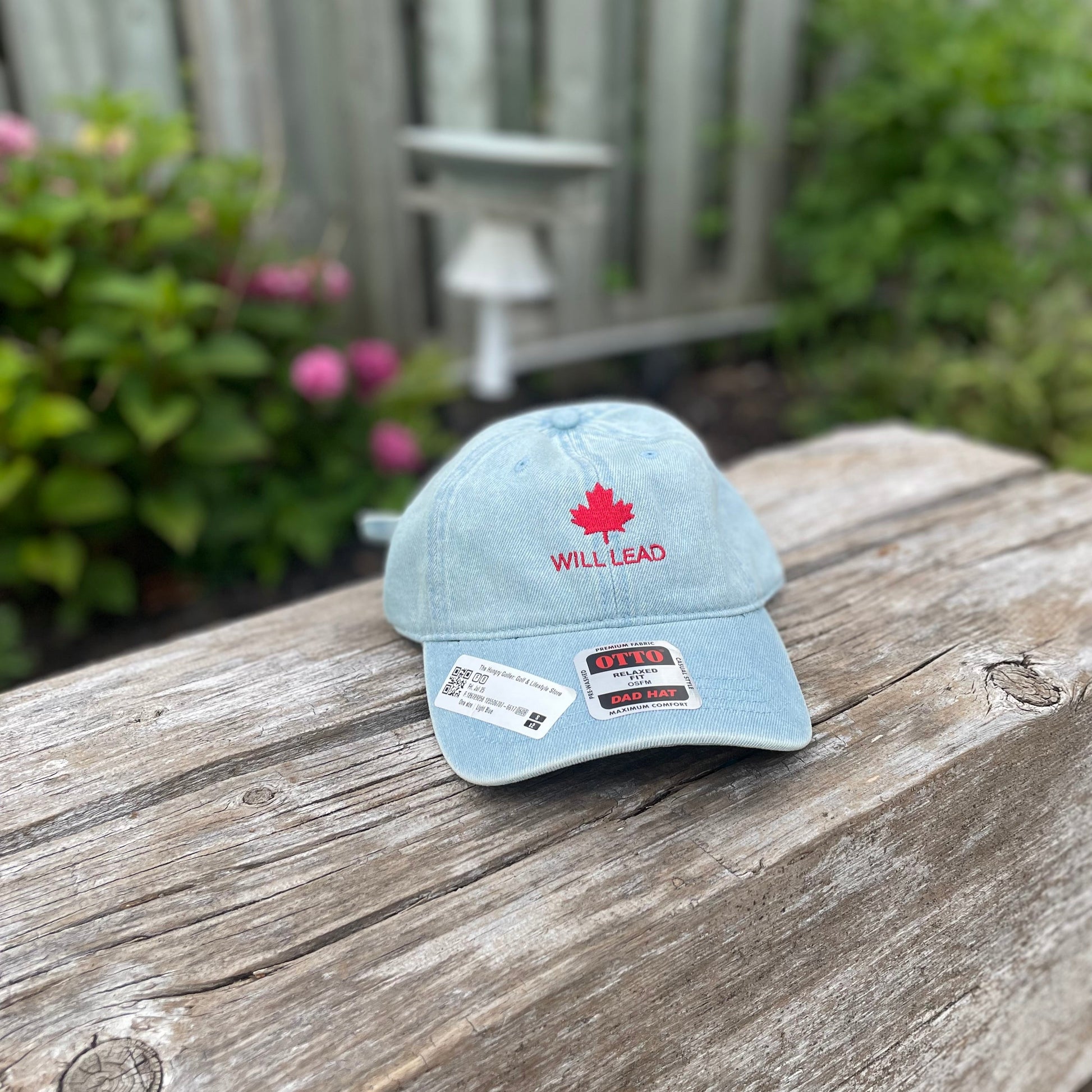 Show your Canadian pride with this "CANADA WILL LEAD" pigment-dyed denim hat! Made from 100% cotton, the 6-panel cap provides a light feel, while the adjustable strap ensures a secure and comfortable fit.